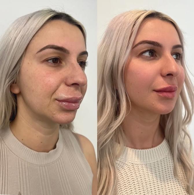 The procedure is typically fast—often completed in under 30 minutes—and results can be seen within 24–48 hours. After the filler dissolves, patients can choose to either leave the area natural or have a new filler treatment done later for improved symmetry and balance. Minor swelling or redness can occur but usually subsides within a few days.